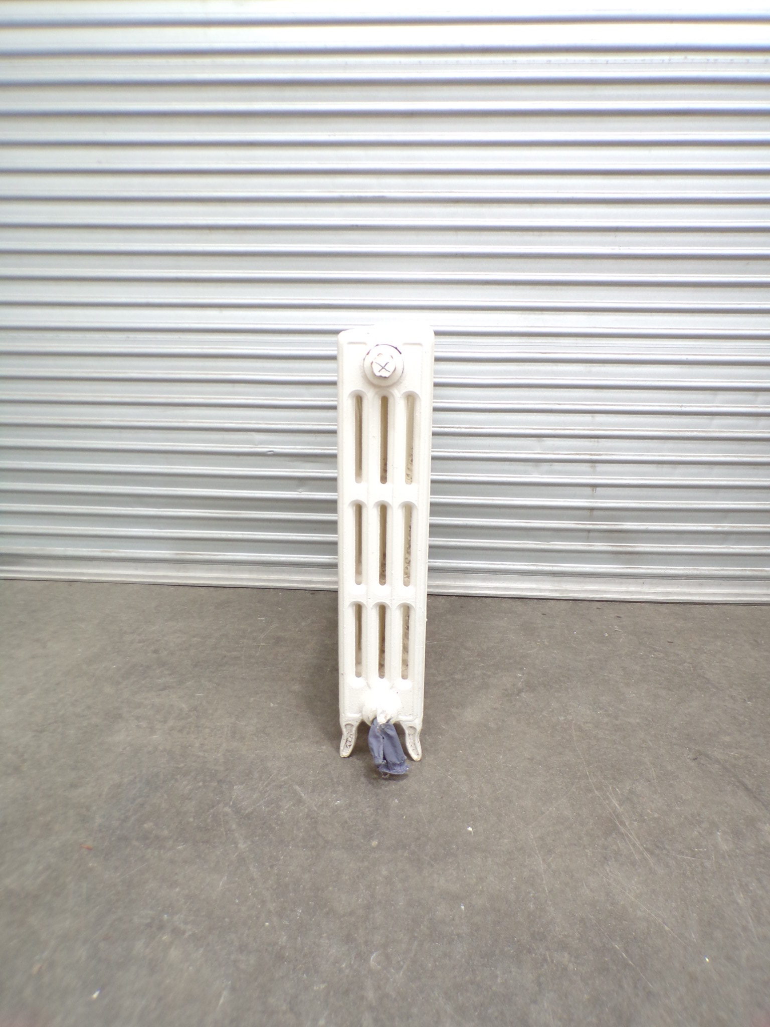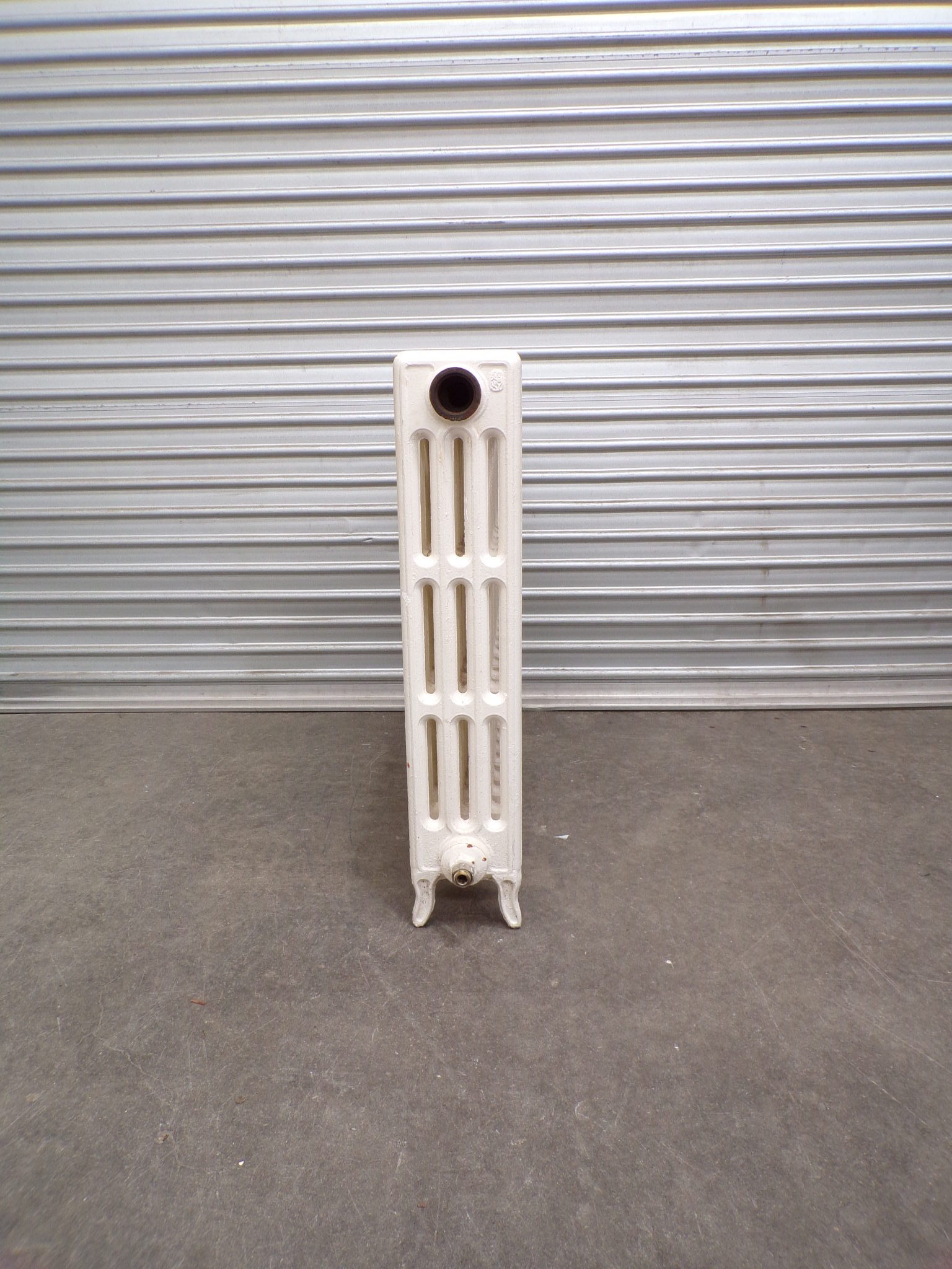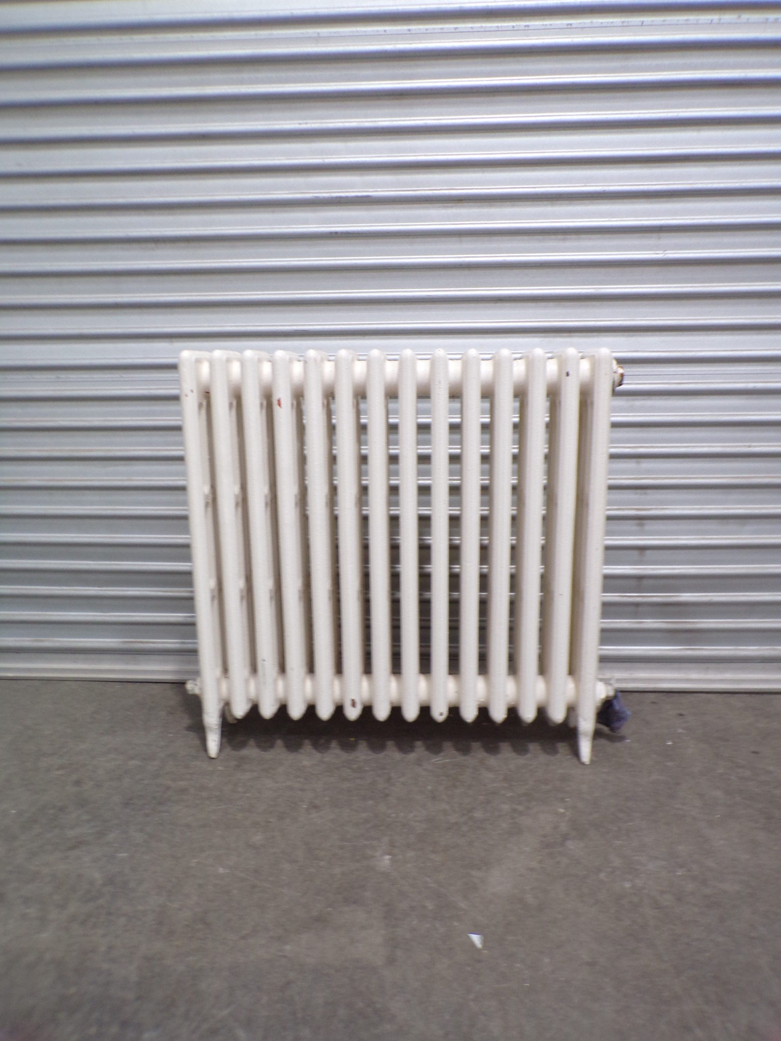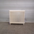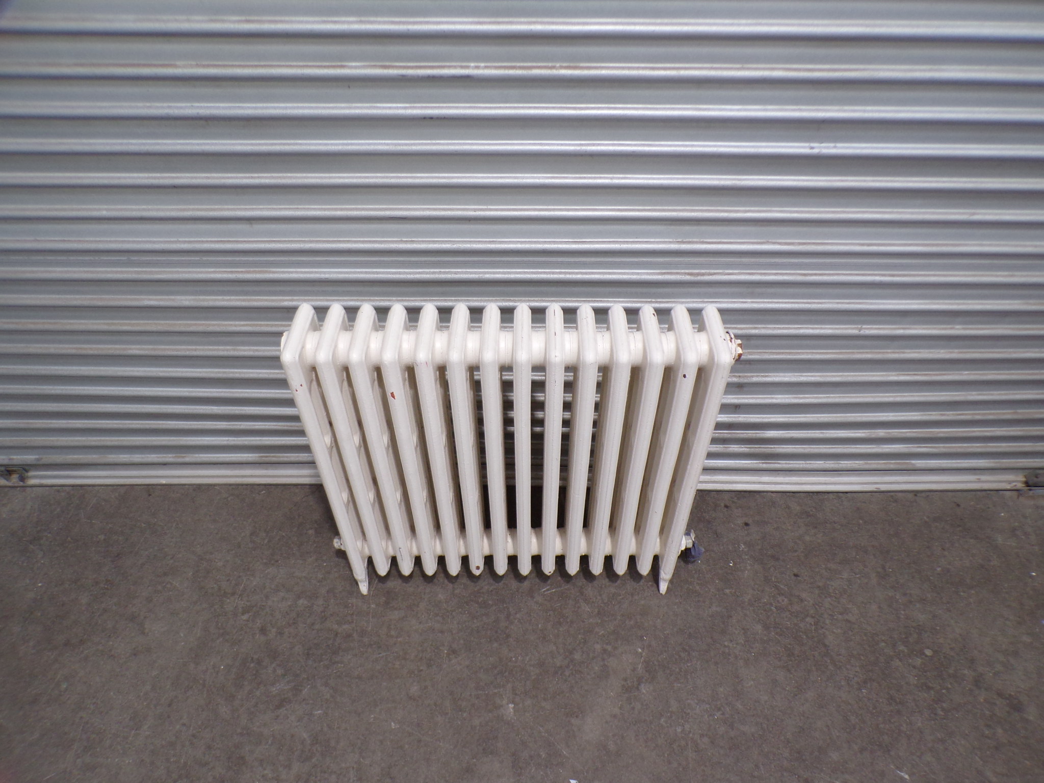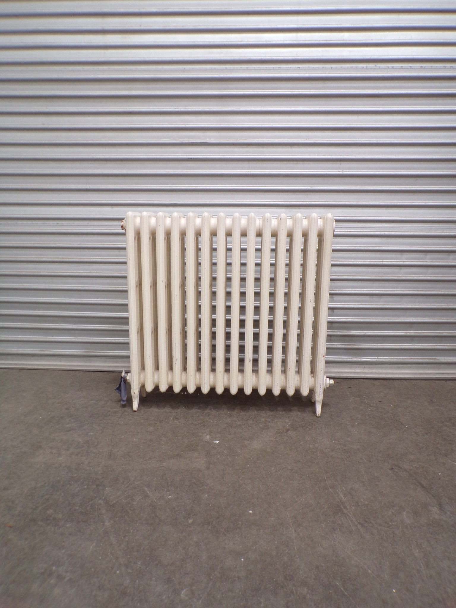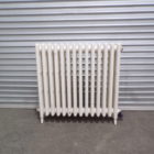 This is a cream, traditional cast iron tubular hydronic heating panel.