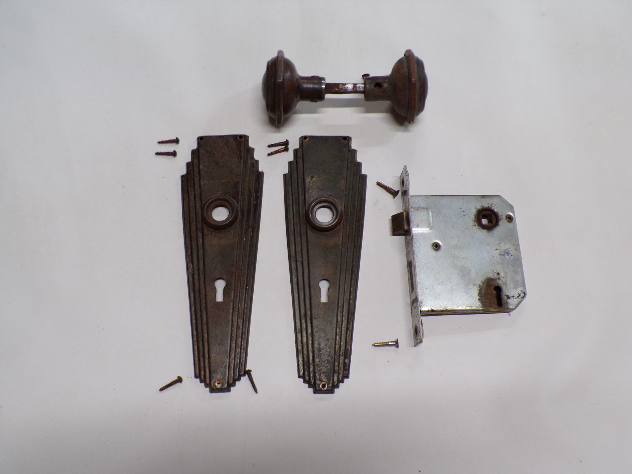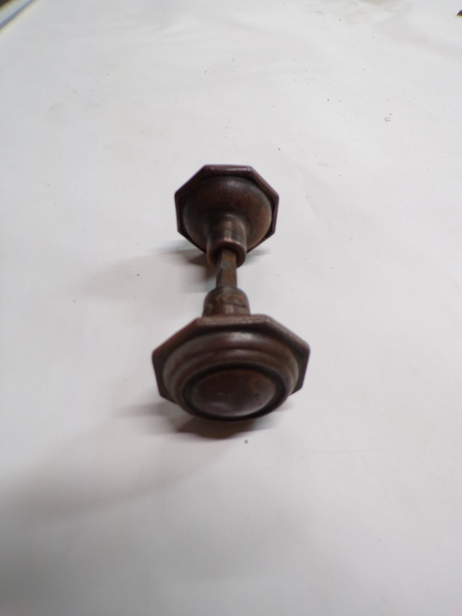 This complete set is made from copper with 2 knobs, backplates and mortise lock mechanism