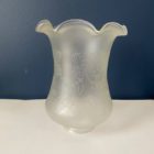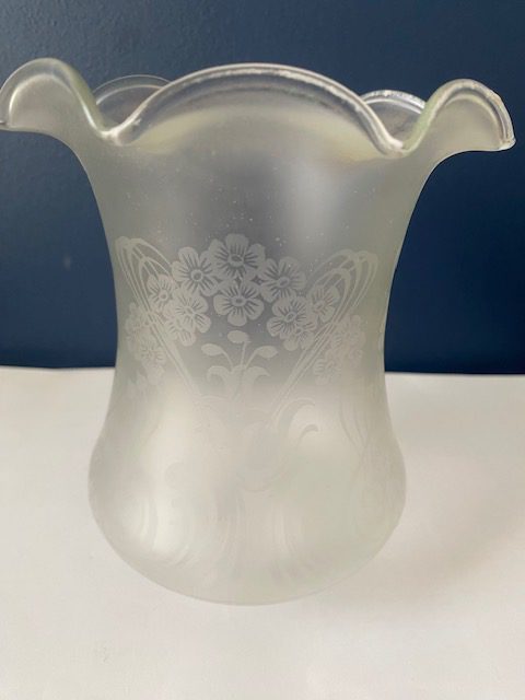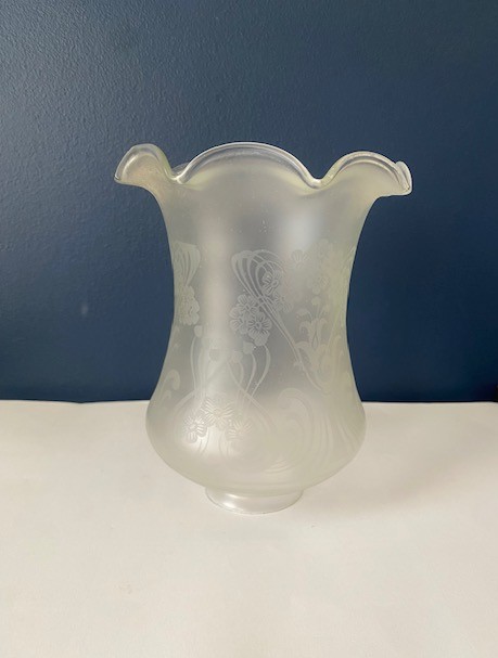 These lovely Victorian shades feature etched glass with a floral and a swirl pattern and frilled edges