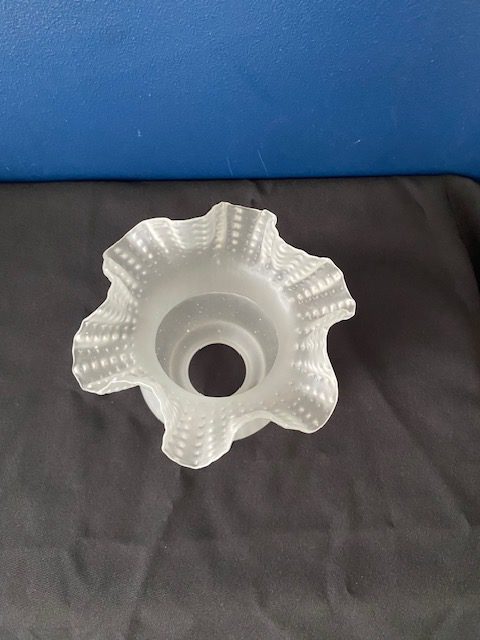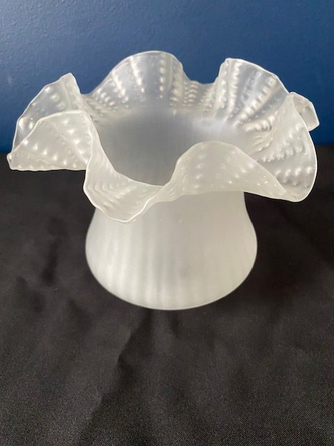 These lovely original Victorian shades feature opque glass with a faint ribbed effect and a frilled edge